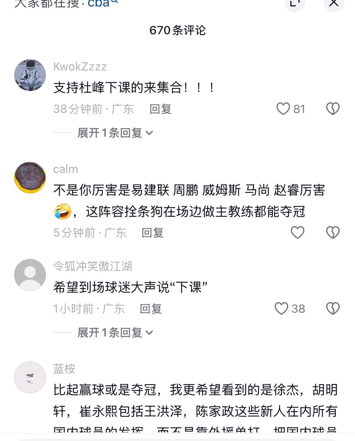 本场比赛杜锋再度让球迷感到绝望。赛前宏远官宣崔永熙复出,本赛季首次全员出战,结果上来球队就被打了一个26-11。杜锋在用人上、战术上、指挥上都彻底被辽篮的乌戈压制,加上历年来杜锋的各种离谱操作,广东球迷对杜锋的不满终于达到了顶点。赛后杜锋的社交媒体评论区一片“下课”呼声。有球迷建议杜锋和朱芳雨一起去找李春江钓鱼,有球迷建议杜锋学一下杨鸣,“给球迷一条活路,给自己一个体面”。也有球迷觉得杜锋最好是专心从政,球队还是交给合适的人接手好了。无论如何,杜锋的宏远教练生涯都到了最危险的地步,不知道陈老板还能忍他到什么时候。